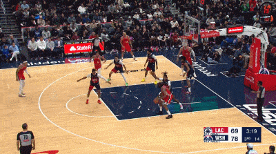 易边再战,乔治和卡林顿连得4分,祖巴茨补篮得手。萨尔和哈登先后得手,萨尔乔治;连续命中三分,约翰逊抛投命中拉开到9分。祖巴茨投篮得手,约翰逊和桑德斯先后命中三分。科林斯和萨尔接连扣篮得手,邓恩连得4分,卡林顿命中三分,哈登连续突破独得6分,米勒抛投造成干扰球,哈登两罚全中带队打出10-0反超,乔治先是正面命中三分,随后压哨打板命中三分,不过裁判回看后因为超时取消,快船队79-81落后奇才队结束第三节比赛。