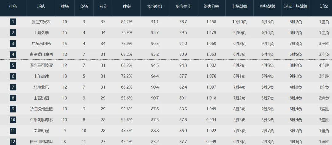 昔日王朝球队,在失去韩德君和张镇麟之后,以及赵继伟(本赛季至今仅出战四场比赛)持续伤缺情况下,退步速度太快了,迄今为止仅仅取得8胜11负排名联盟第11位,面临着无缘季后赛的危险。